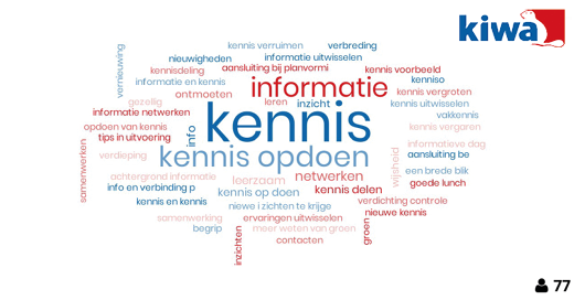 Groen maakt vaak integraal onderdeel uit van ‘civiele’ bestekken. Kiwa Training zien dat hier nogal eens uitdagingen uit voortkomen en hoe zijn deze uitdagingen beter te tackelen dan vakkundige betrokkenen uit het hele land bij elkaar te brengen en te laten sparren over aanpak en oplossingen. Met ruim 85 deelnemers uit alle windstreken en enorm veel input en inspiratie kunnen we alleen maar zeggen dat het een enorm succes was, die smaakt naar meer!